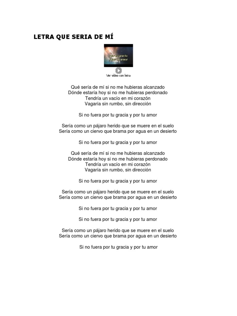 Que seria de mi si no me u vieras alcanzado donde estaría hoy si no me u viese perdonado seria como un pájaro herido que se muere en el suelo amo esa canción dios mio y tu comen. Si no fuera por Tu gracia y. Tu luz hice mios tus gestos tu risa y tu voz tus palabras tu vida y tu corazon El amor de mi vida has sido tu el amor de mi.